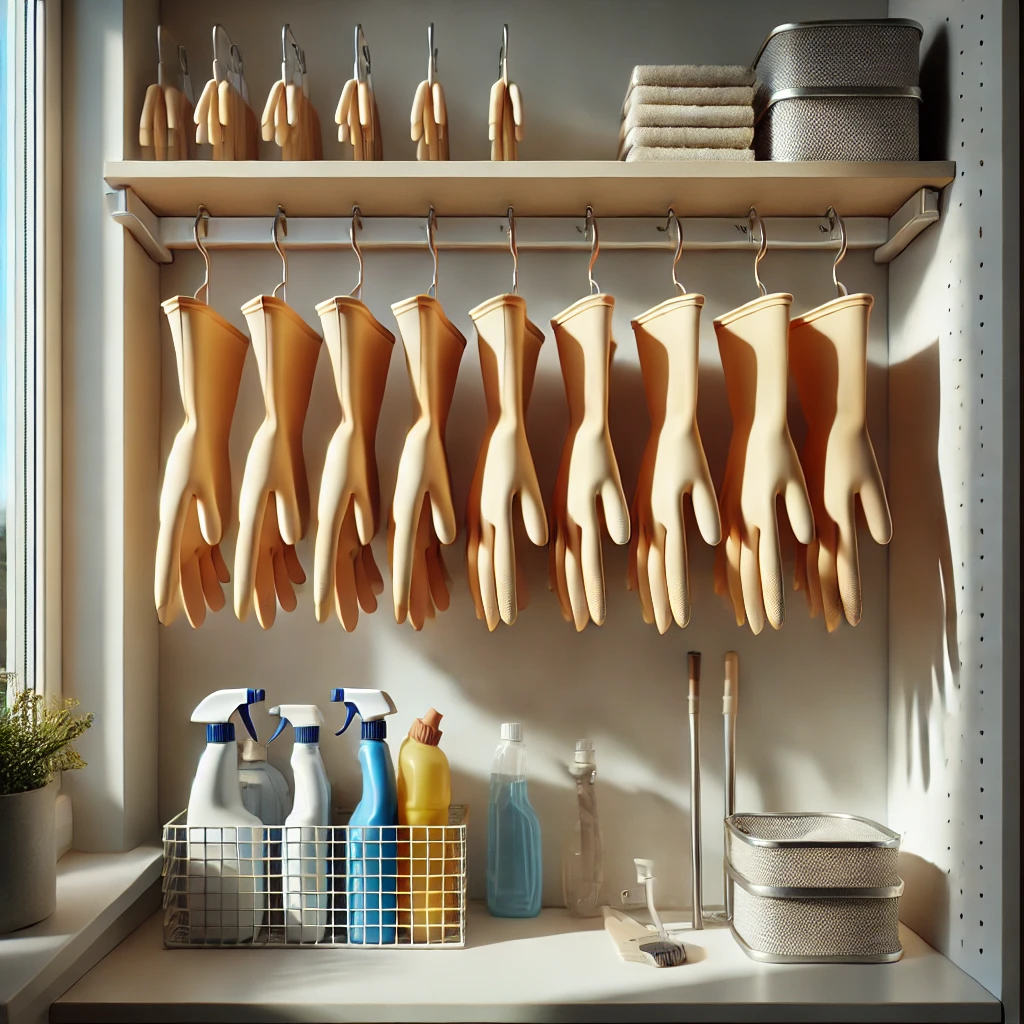 - 장갑 전용 걸이 사용: 주방이나 욕실 벽에 고무장갑 전용 걸이를 설치하면 건조도 빠르게 되고, 보관도 편리해집니다. 특히 공기가 잘 통하는 곳에 장갑을 걸어두면 건조 속도가 빨라 곰팡이 발생을 줄일 수 있습니다.
